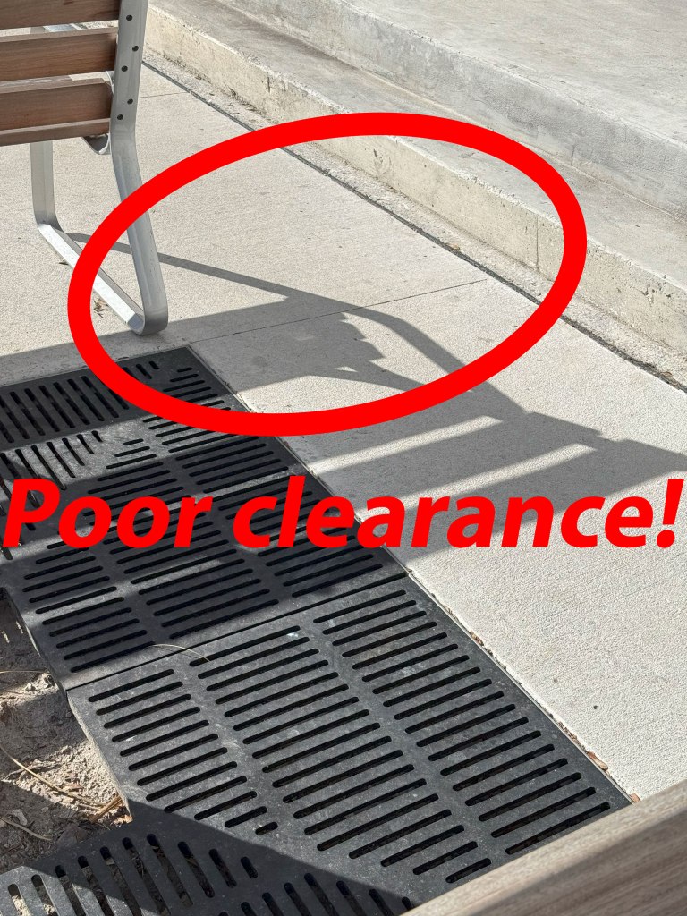 These photos show poorly placed benches that somehow sailed through our zoning and building department reviews and hearings.