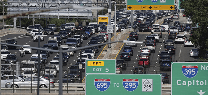 From: Dissent Magazine, Highway Robbery, “Traffic on I-395 in Washington, D.C. (Kevin Dietsch/Getty Images)”