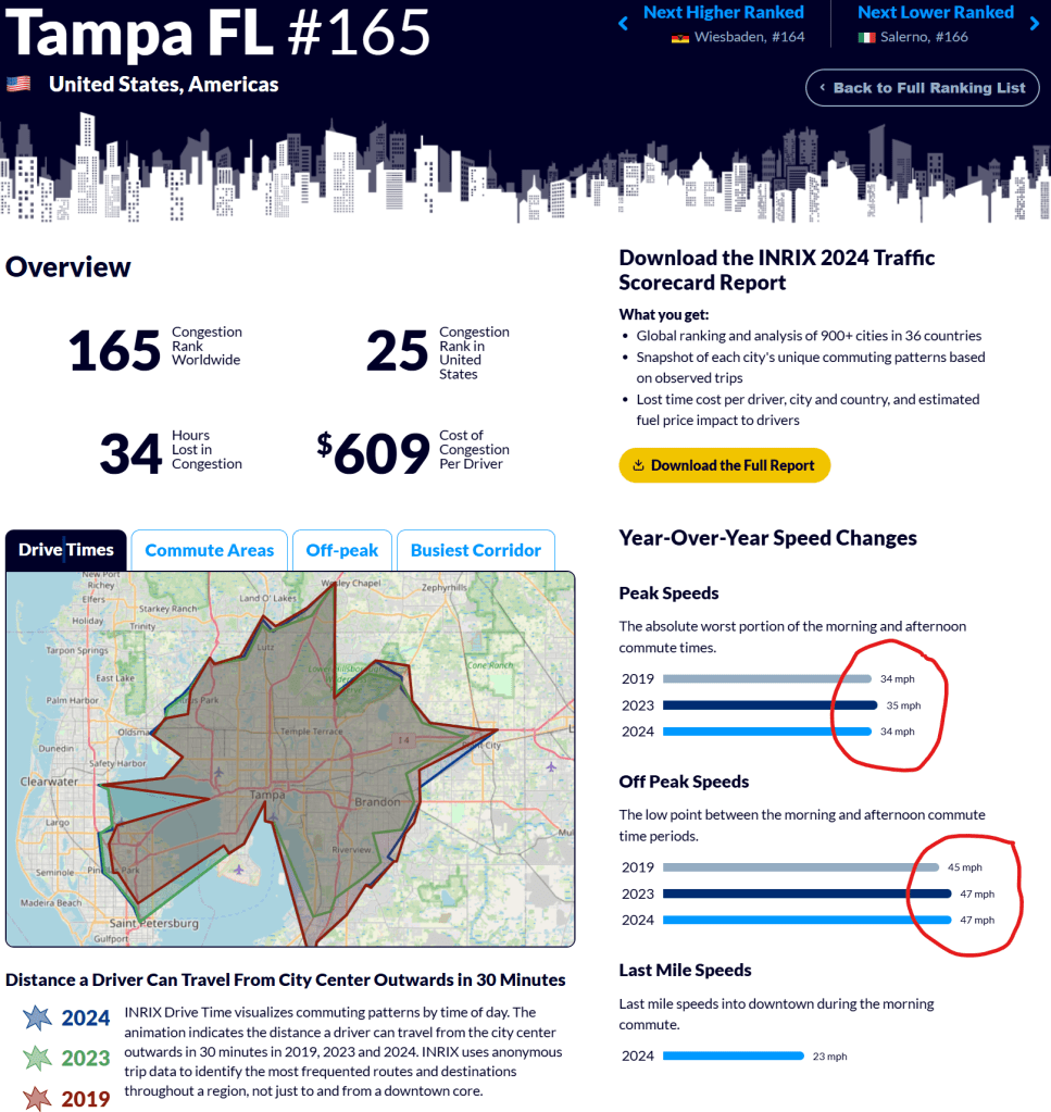 INRIX’s 2024 Global Traffic Scorecard for Tampa.